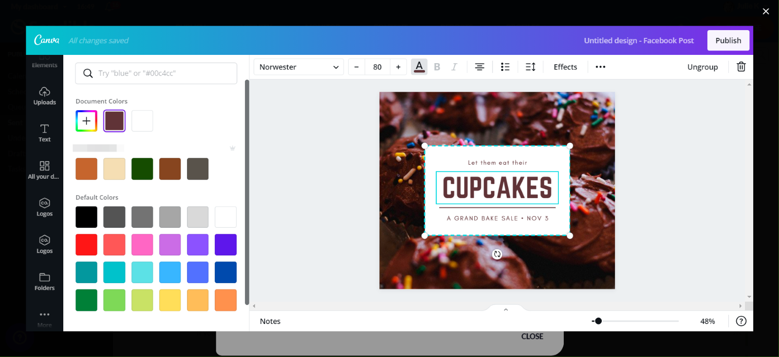 If you are logged into your Canva account, you will have access designs, uploads, logos, colour palettes, and other brand resources from your account.