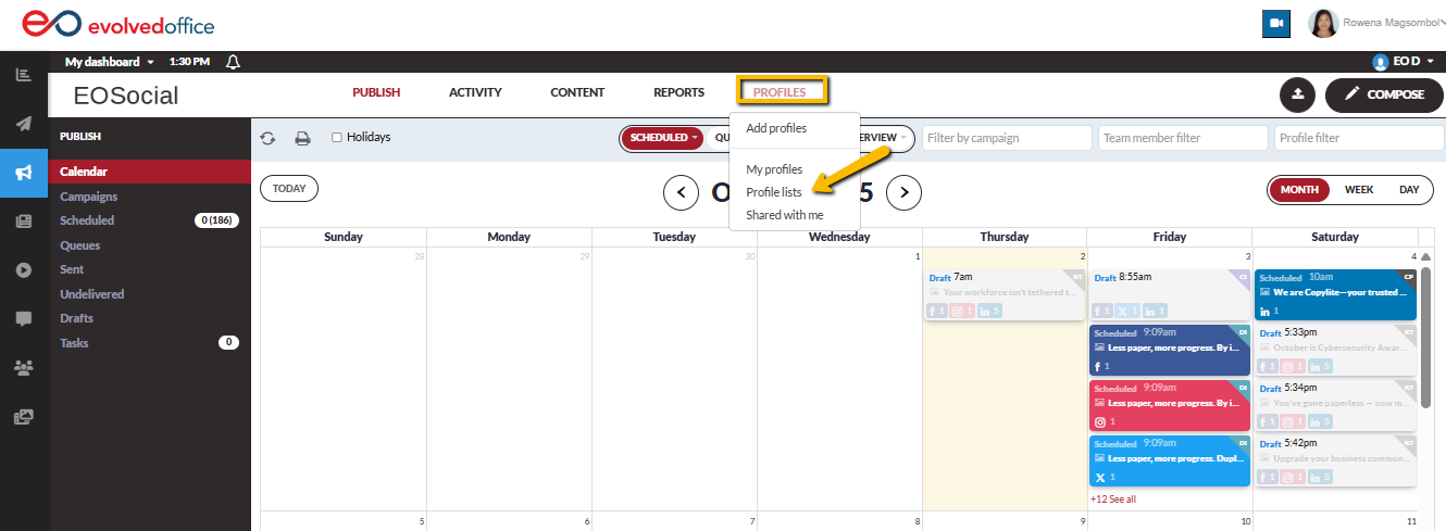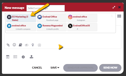 When your Profile List is set up, you can select it from the drop-down menu in the Compose Box in the same way you would normally add a social profile to a post.