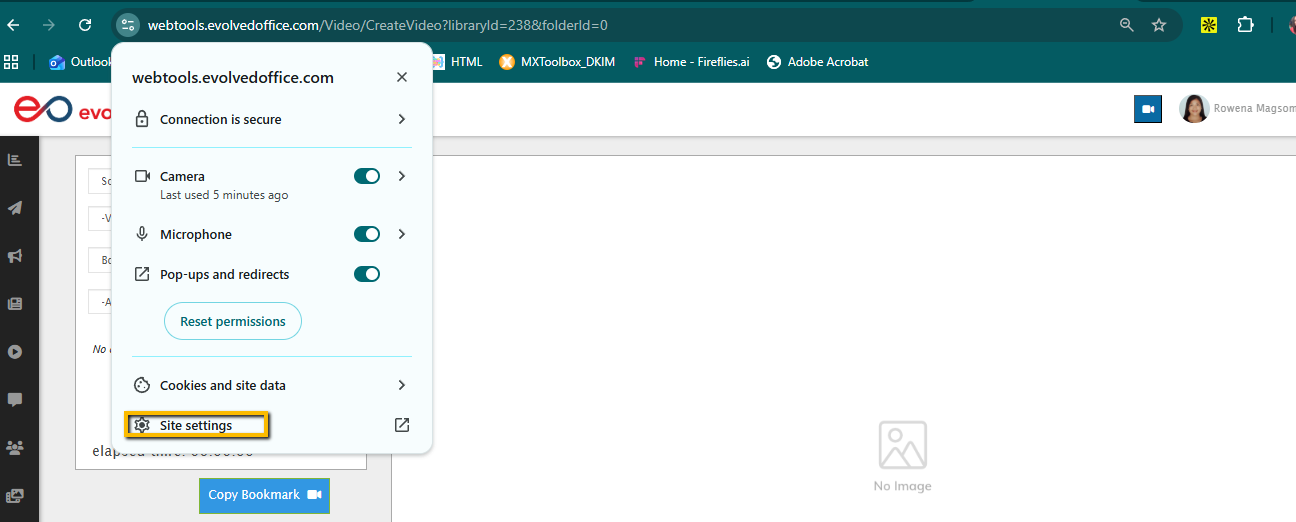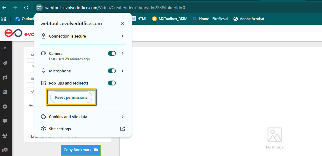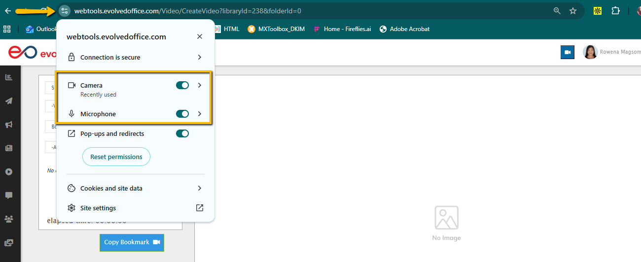 “Allow webtools.evolvedoffice.com to use your microphone/camera?”