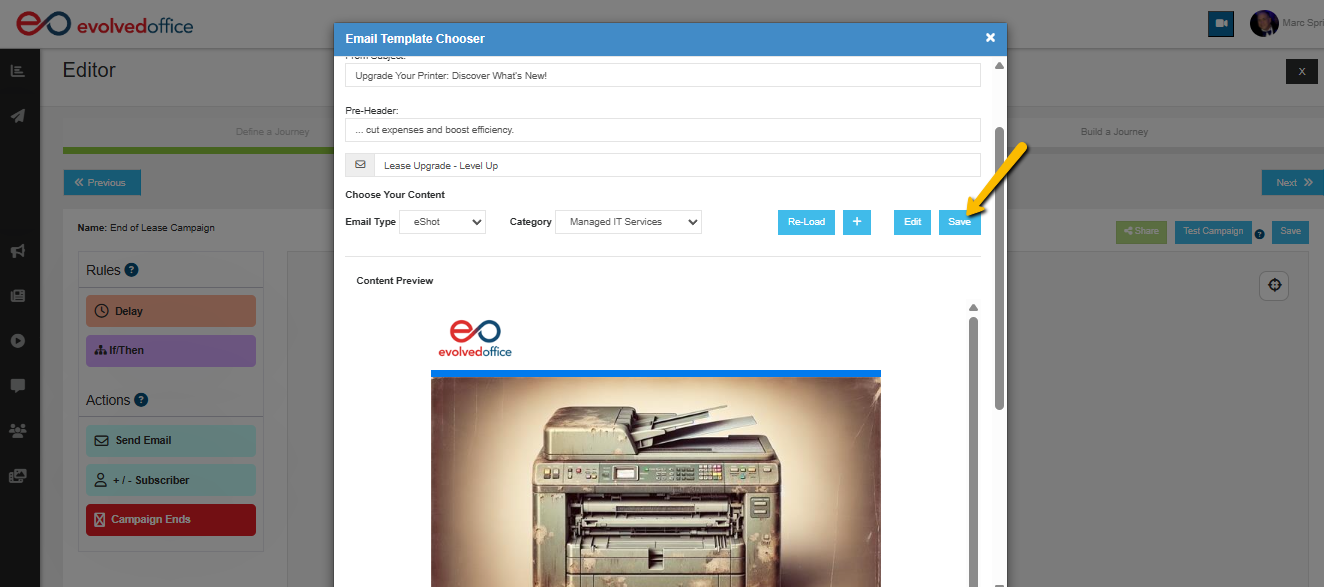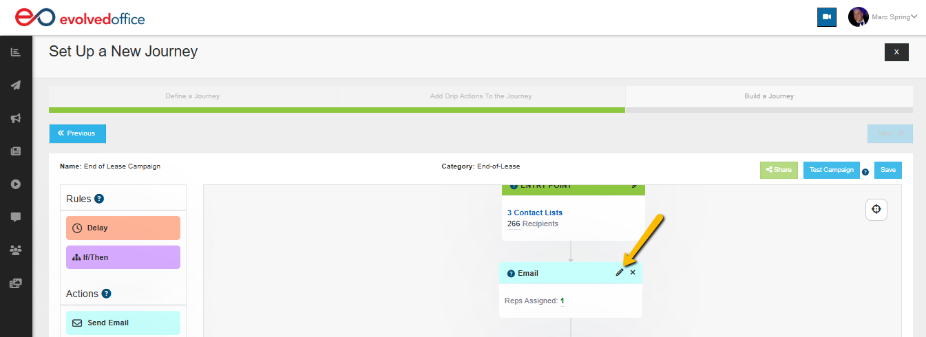 Managing your campaign emails directly inside the Journey Manager keeps everything centralized and efficient — no need to navigate away from your workflow.