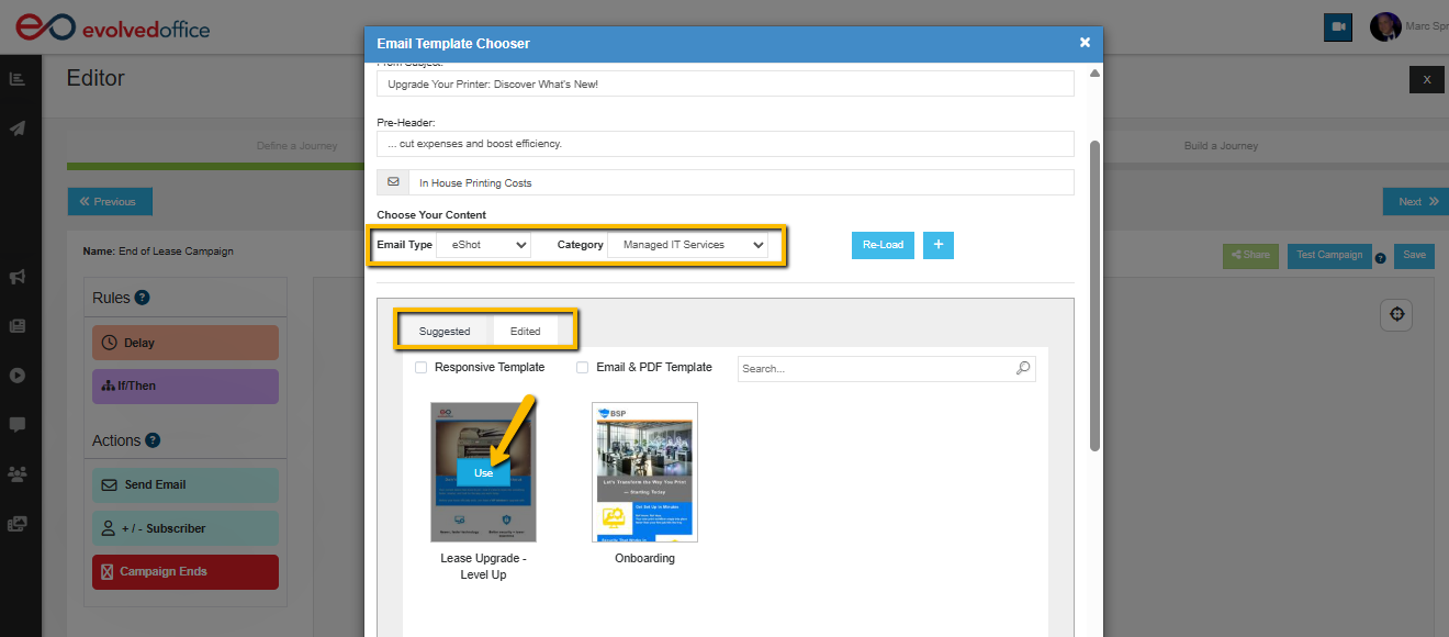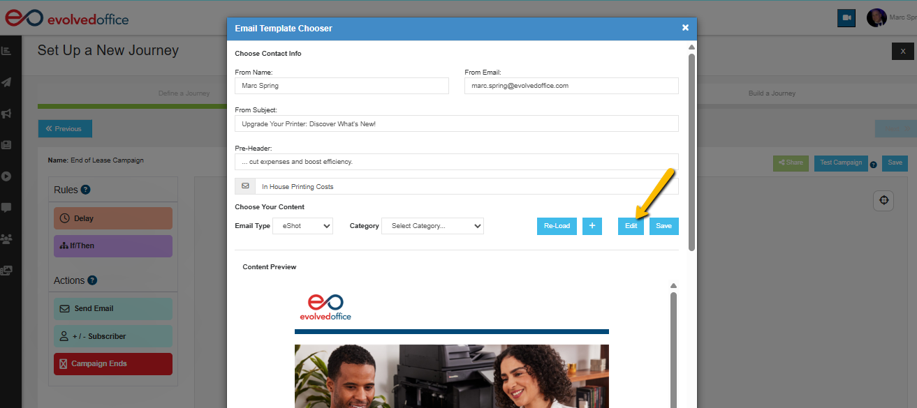 If you need to update the email tied to a campaign inside the Journey Manager, you can easily edit the existing eShot, create a new one, or swap it out entirely — all without leaving the Journey Builder.