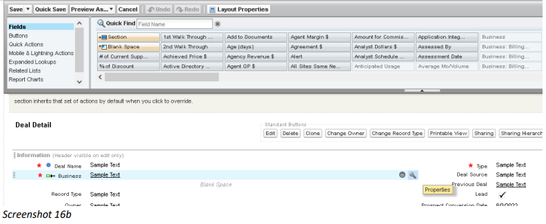 - Once in the layout, choose the business field and click the settings icon (wrench icon).