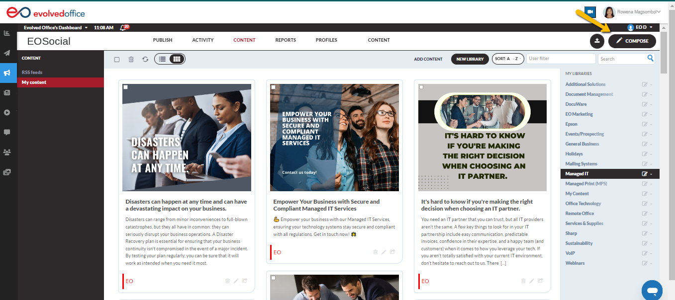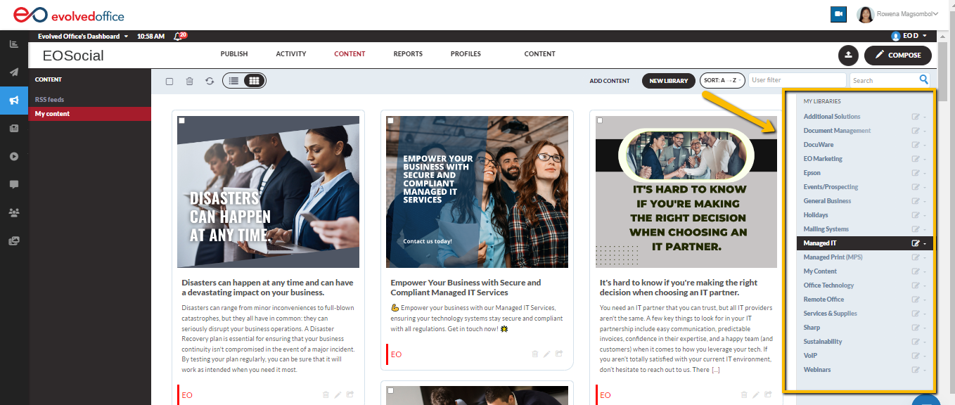 - If you want to use Managed IT content, for example, click on the corresponding library.