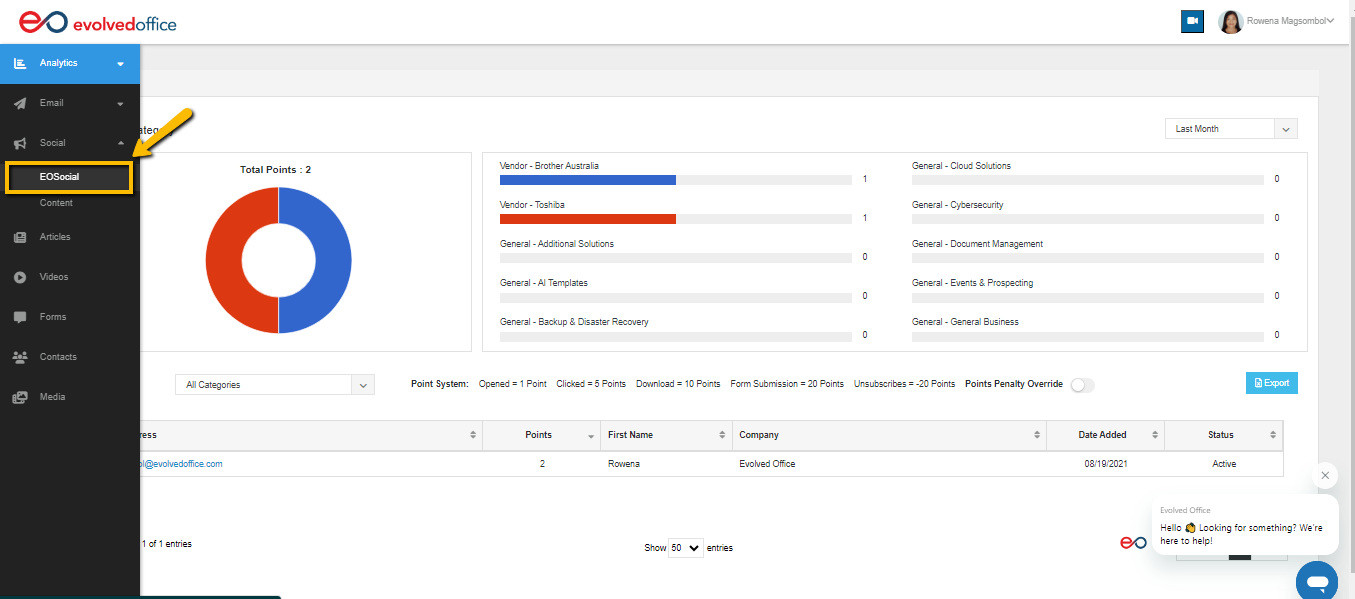 - Navigate eoSocial on the left menu bar.