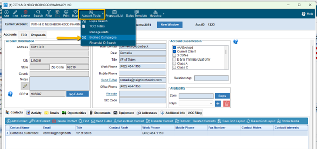 Sherpa Home → Accounts → Account Tools → Evolved Campaigns