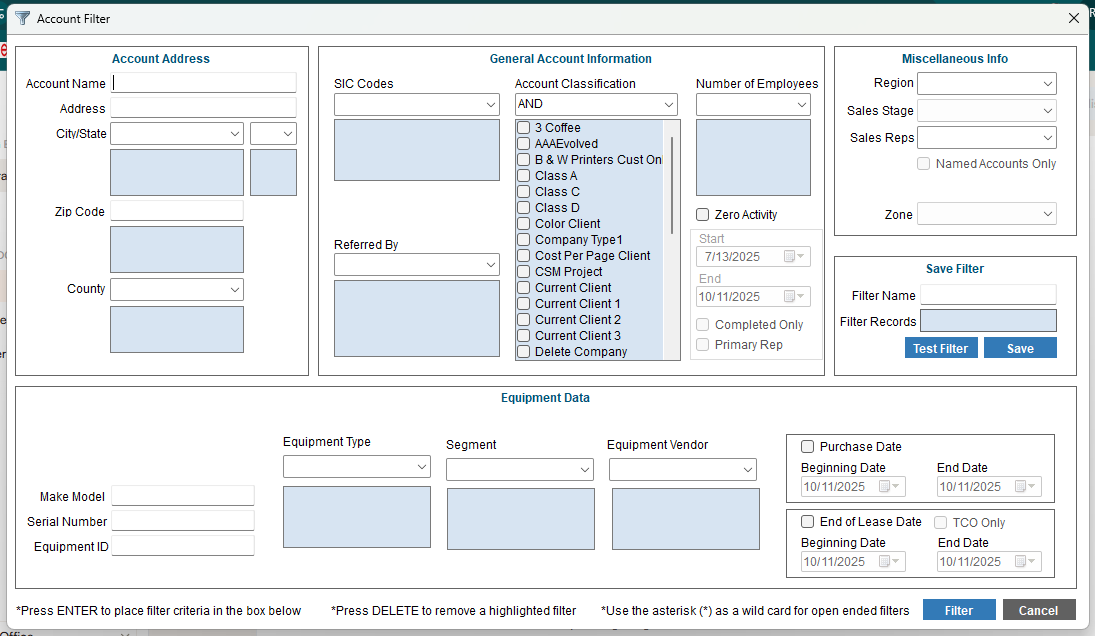 - Build filters around lease end dates or specific equipment lines for timely outreach