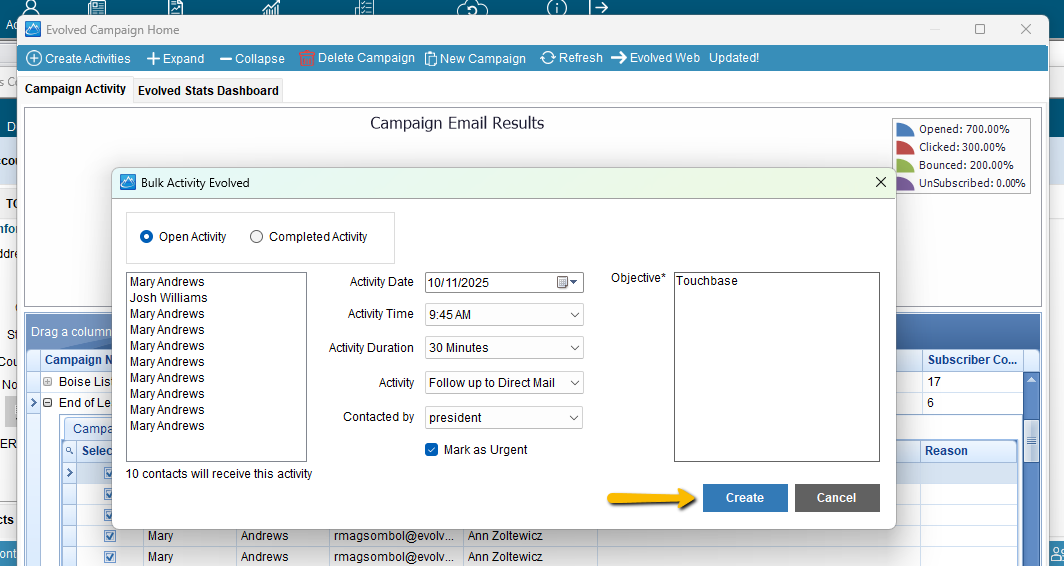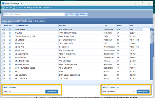 - This syncs the filtered list into Evolved Office for outbound marketing.