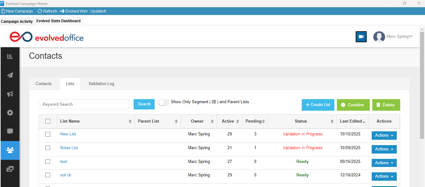 - Syncs lists directly into Evolved Office for campaigns and automation