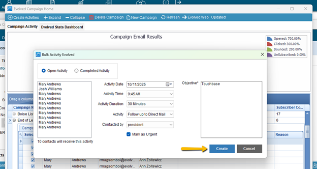 - Create activities immediately after reviewing campaign engagement for timely follow-up.