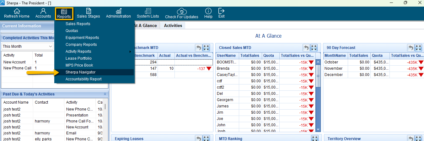 - Navigate to Sherpa Home → Reports → Sherpa Navigator
