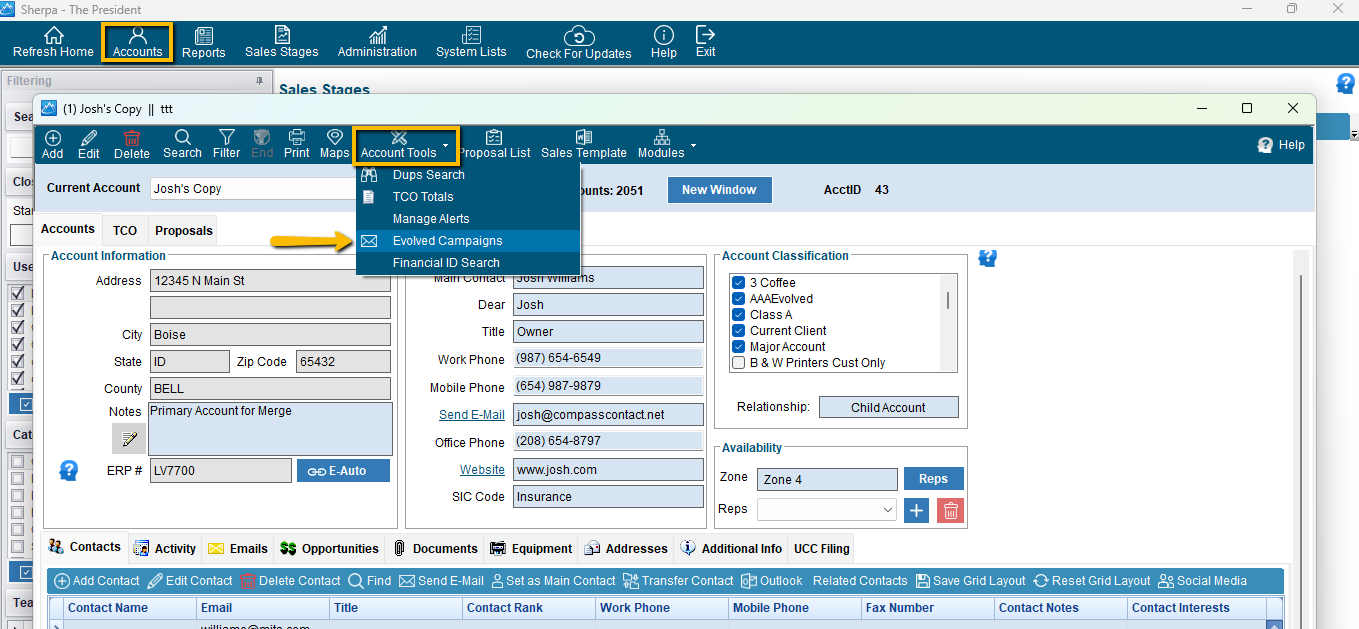 - Go to Account → Account Tools → “Evolved Campaigns”.
