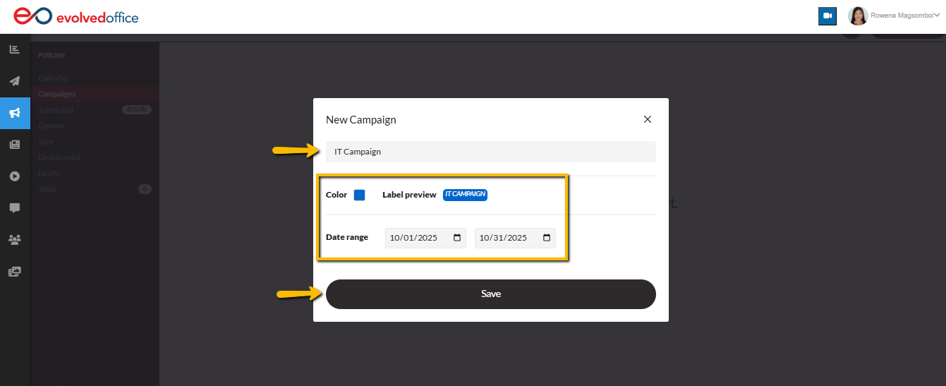 - Organize your posts by labelling them as part of a Campaign and set start and end dates, if appropriate.