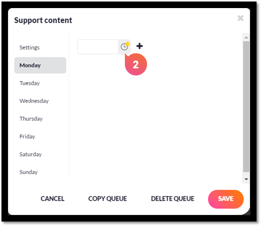 - Or when adding in times for time slots in a Queue: