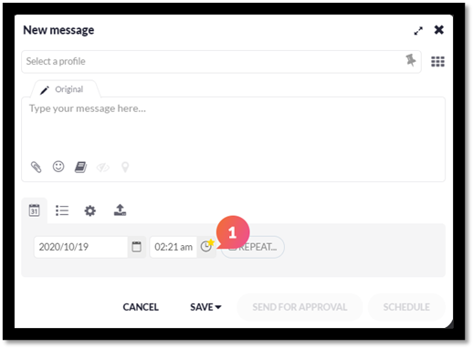 - Optimal times can be added either to messages when scheduling a post in the Compose box as shown below: